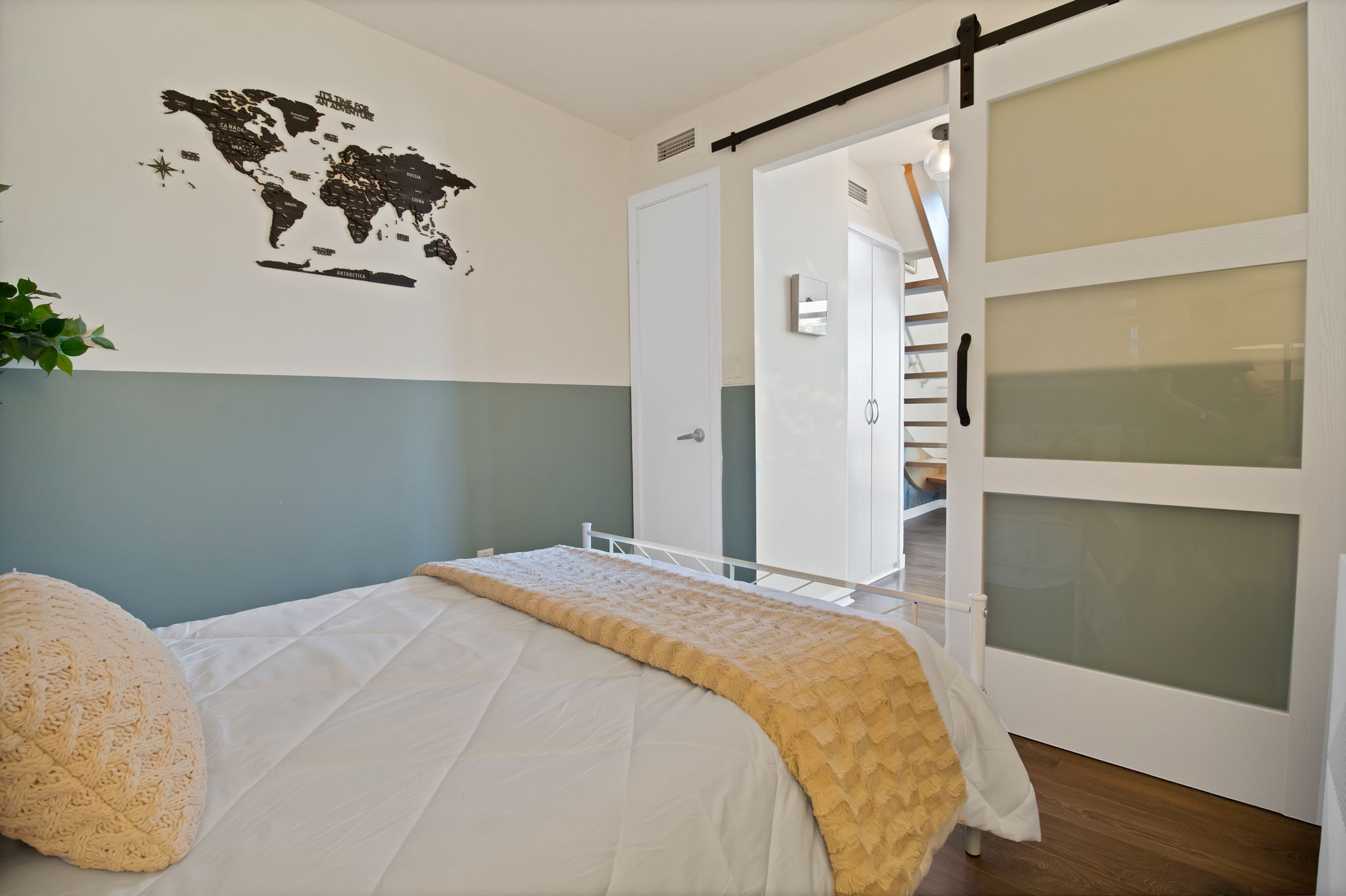 The modern kitchen is ideal for morning coffee or a home-cooked meal. From the private, spacious balcony, you can unwind and watch the city come to life. Upstairs, the expansive loft-style primary bedroom provides a private retreat with stunning city views, a cleverly designed walk-in closet, and a convenient in-unit washer and dryer. A second bedroom offers the perfect space for a child, a guest room, or a dedicated home office.