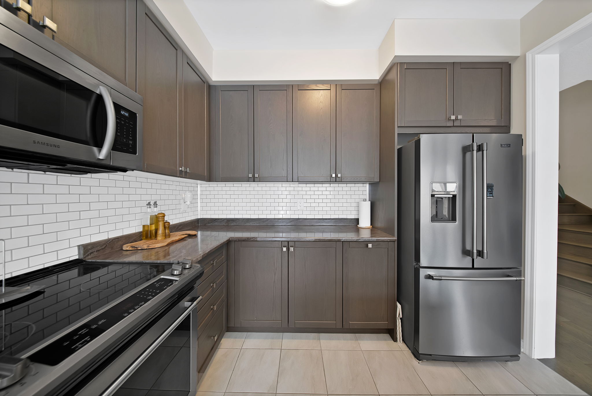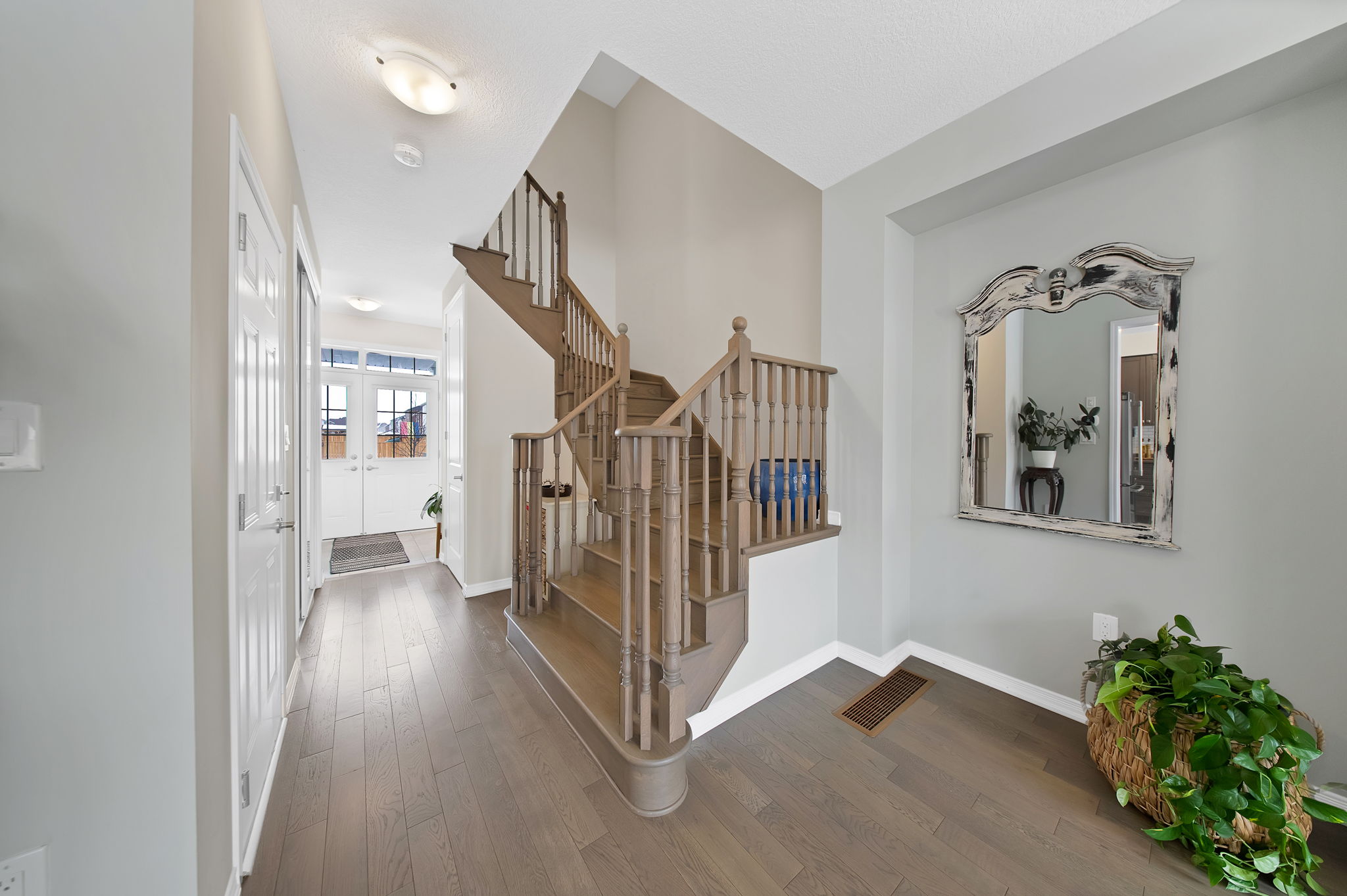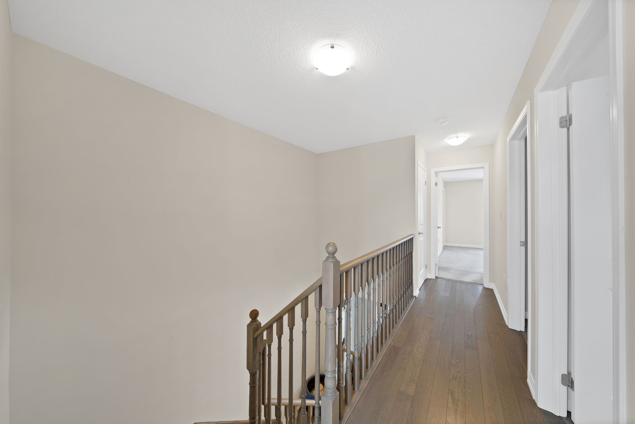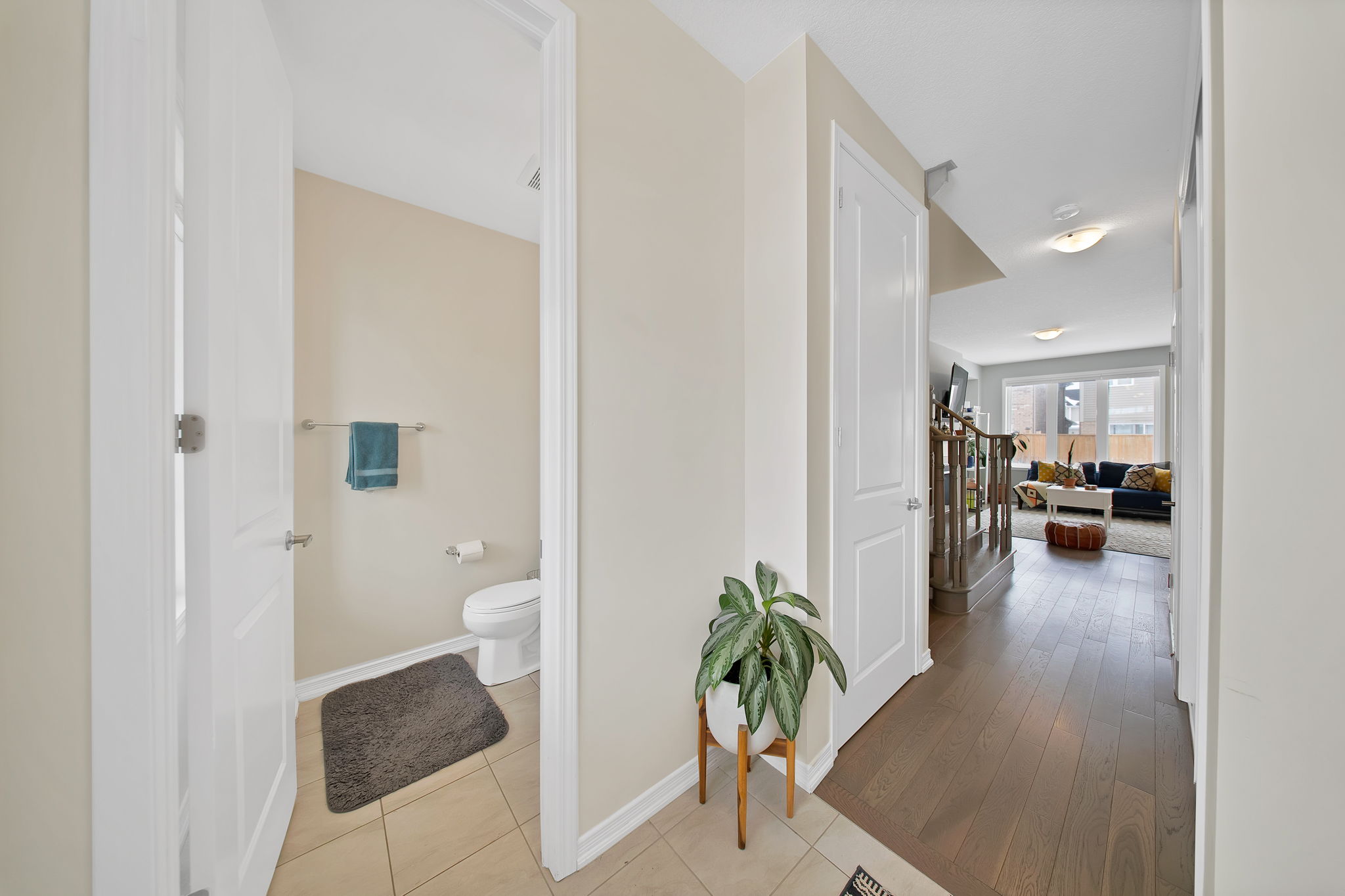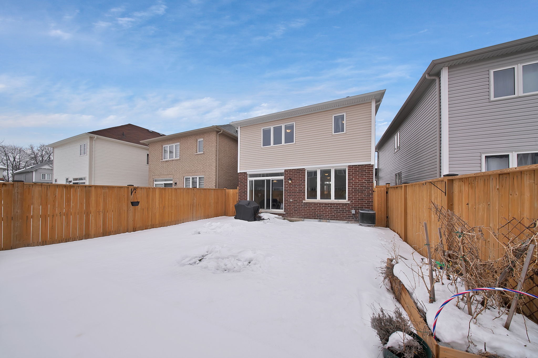 Convenient interior access from the built in garage adds ease to busy mornings and winter months.A hardwood staircase leads to the upper level, offering durability and easy maintenance. Upstairs, the spacious primary bedroom includes a walk in closet and a private ensuite with glass shower. Two additional well proportioned bedrooms and a full bathroom provide flexibility for family, guests, or a home office. With three bathrooms in total, the layout supports practical and comfortable living. Set on a 30 x 92 ft lot, the fully fenced backyard features a premium fence already in place, offering privacy and eliminating the need for future installation.